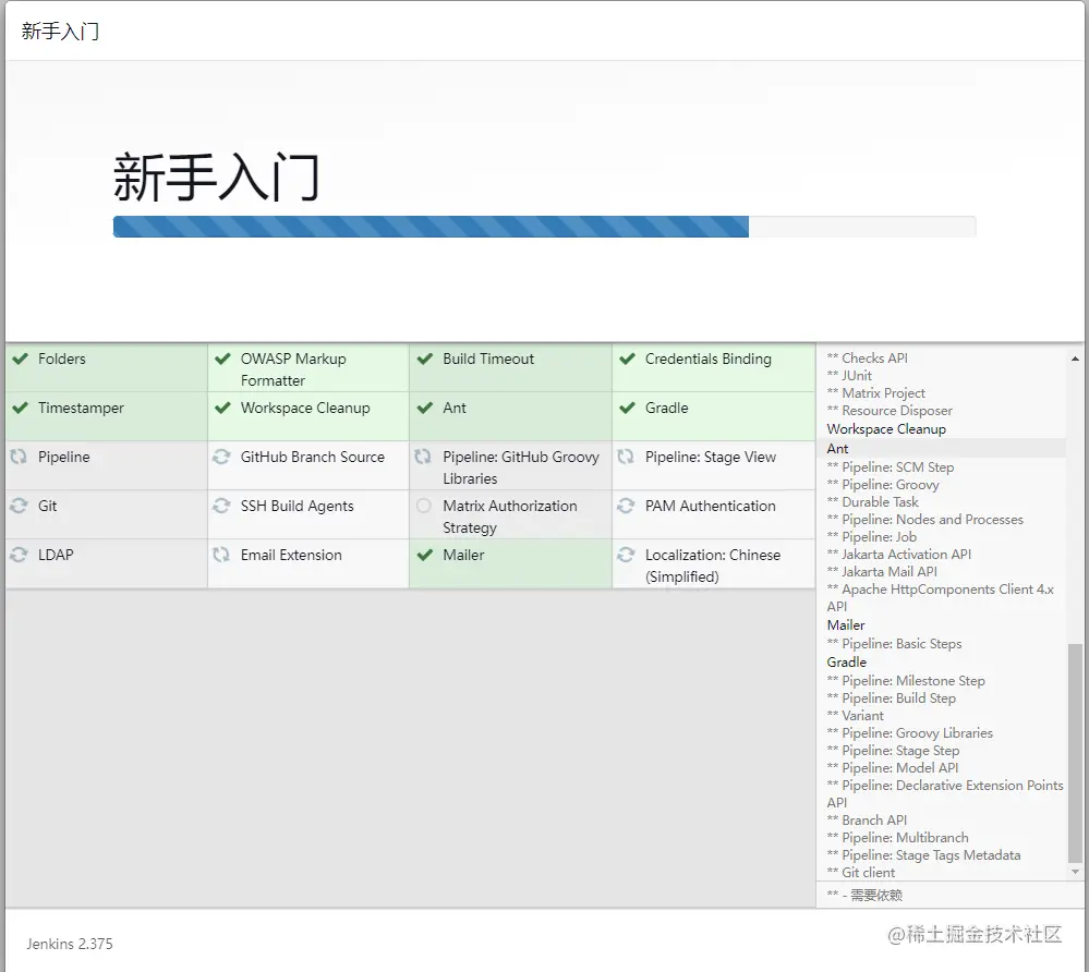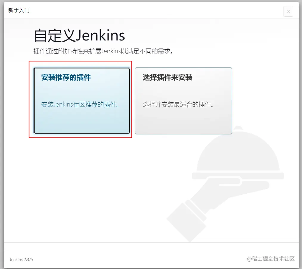 在浏览器中输入服务器ip和映射的端口号,可以看到jenkins的初始化界面,按照提示逐步操作: