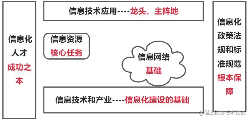 信息技术应用、信息资源、信息网络、信息技术和产业、信息化人才、信息化政策法规和标准规范