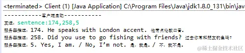 服务器将请求结果推送给客户端,这里客户端就获取到了它请求的第174句、第258句及第5句,并输出到文件中