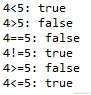 System.out.println("4<=5: " + (num1 <= num2)); // 判断4小于等于5是否成立