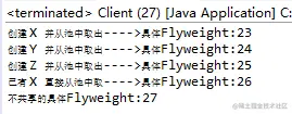 从这个结果我们可以看出来,第一次创建X、Y、Z时,都是先创建再从池中取出,而第二次创建X时,因为池中已经存在了,所以直接从池中取出,这就是享元模式。