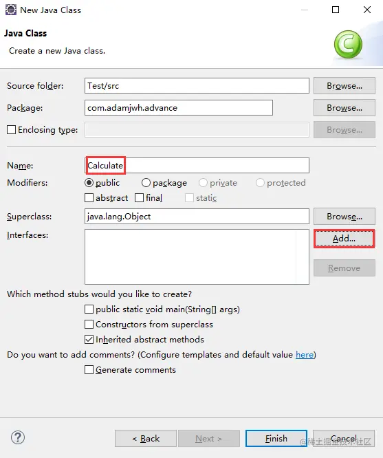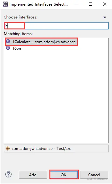 (1)填写类名,点击Add添加接口