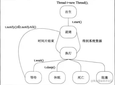 下图为线程生命周期状态图,可对照上述文字加以理解。