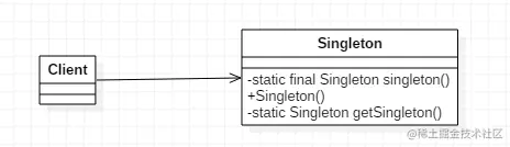 单例模式(Singleton) ,保证一个类仅有一个实例,并提供一个访问它的全局访问点。UML结构图如下: