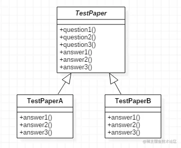 下面就以上方提到的做试卷为例,具体实现一下以说明如何将模板方法模式应用在实际案例中,UML图如下: