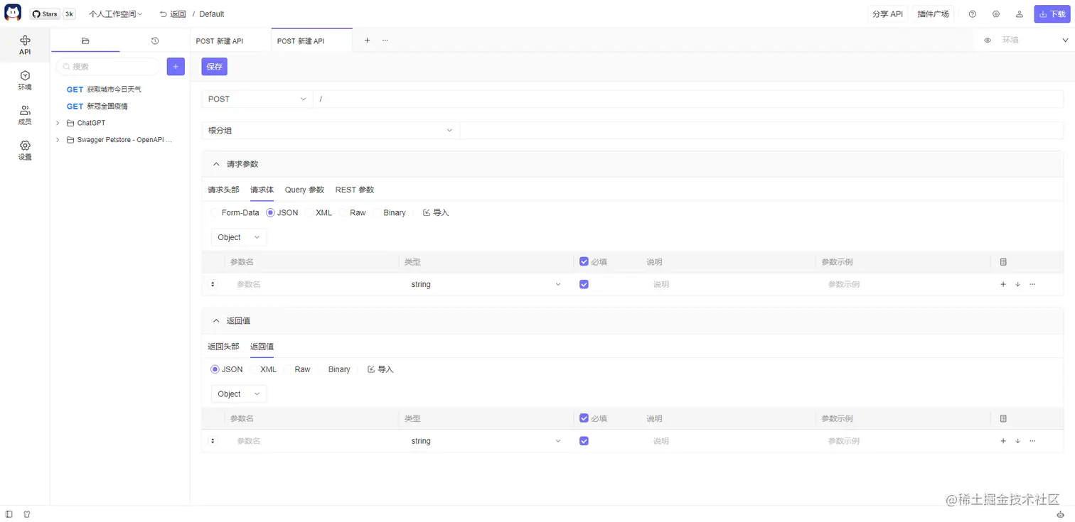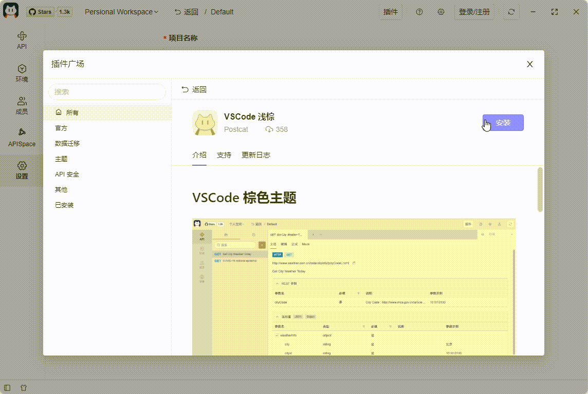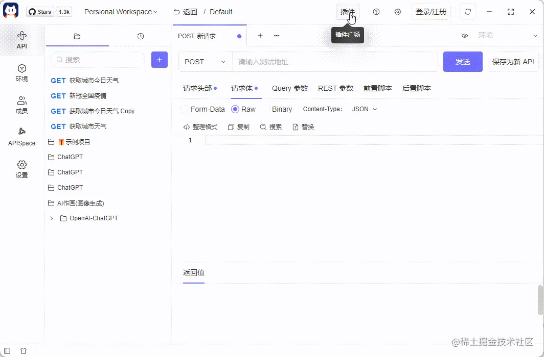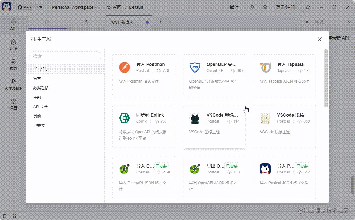 上面演示的工具是开源的 API **管理工具,叫 Postcat,纯国产,免费的,主打插件生态,**适合中小团队以及个人开发者使用,有 API 相关的核心功能。