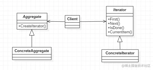 - 为遍历不同的聚合结构提供一个统一的接口
