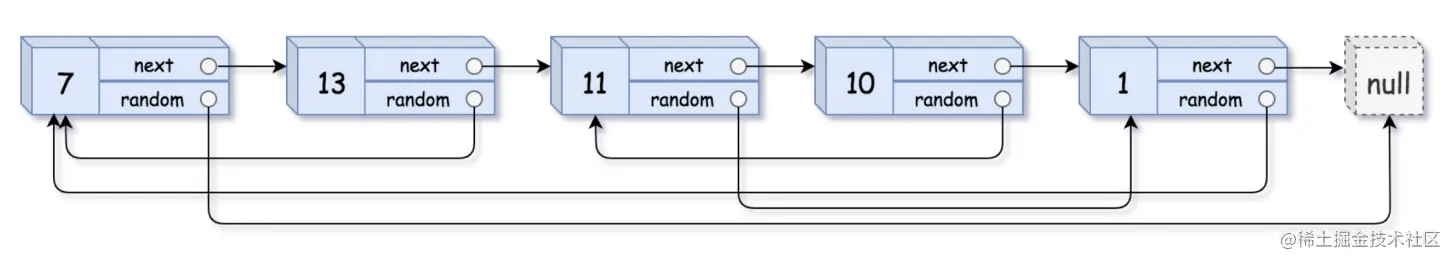 【输入】head = [[7,null],[13,0],[11,4],[10,2],[1,0]]