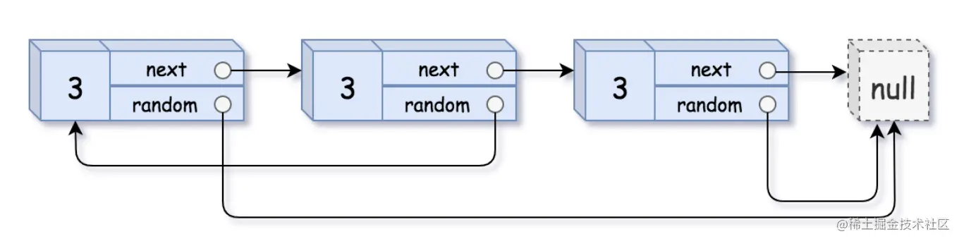 【输入】head = [[3,null],[3,0],[3,null]]