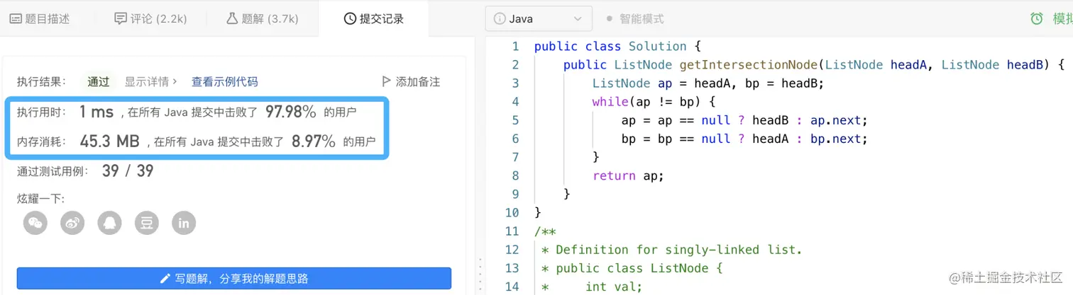 【链表相交】那么这种情况,就是我们可以获得相交节点的情况了,此处就不再赘述了。