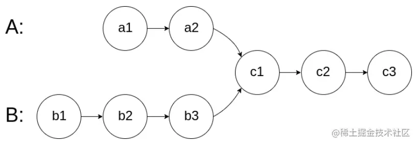 根据题目描述,我们要寻找两个链表的相交起始节点,那么这里我们需要明确一个问题,在链表中,怎么去定义相交这个概念?首先我们来看一下,下面的两种“相交”情况:
