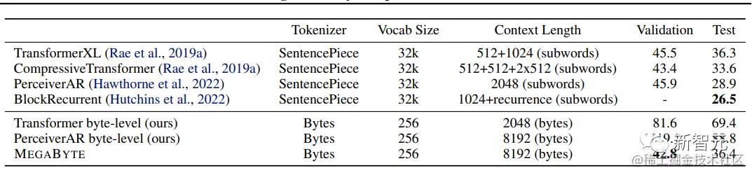 Megabyte远远优于其他模型,并提供与在子词上训练的 sota 模型竞争的结果