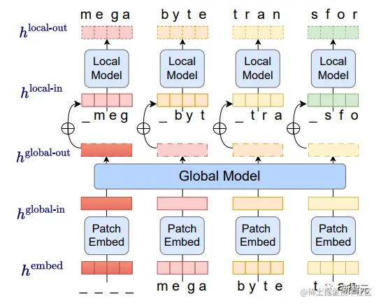 相比Transformer,Megabyte模型展示了一种独特的不同架构,将输入和输出序列划分为patch而不是单个token。