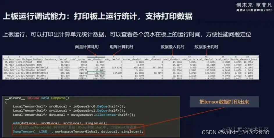 三)上板运行调试能力:打印板上运行统计,以及支持打印数据功能