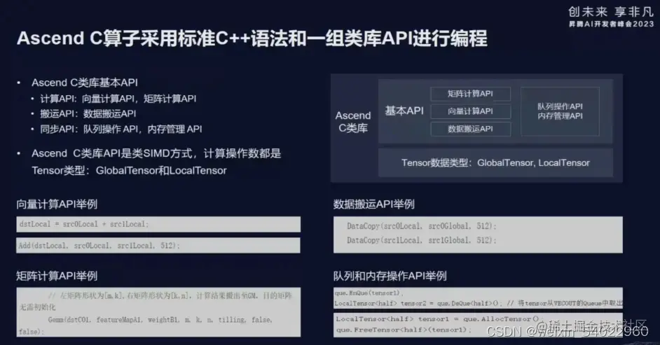 前言:2023年5月昇腾AI开发者峰会上,昇腾CANN首席架构师闫长江老师解密了全新的Ascend C算子编程体系。正好CANN训练营开设了Ascend C算子开发的课程,学习完成后再听大神的串讲,有种豁然开朗的感觉。