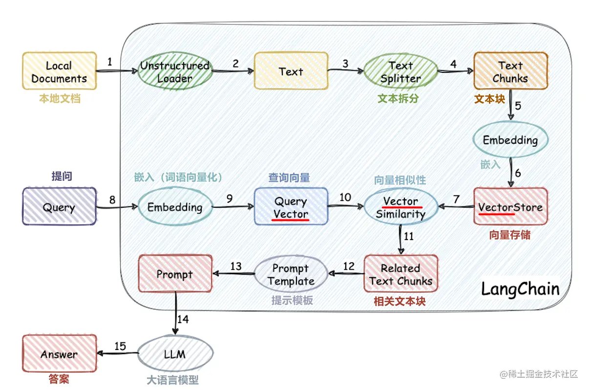 下面的流程图,就是一个基于本地文档库问答的开源项目。