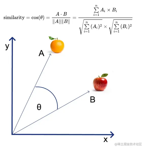 它通过计算两个向量间夹角的余弦值,来评估两者的相似度。