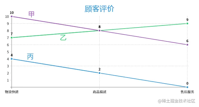 甲和丙的方向是一致的:物流快递最好,售后服务最差。它关注的是一种趋势。