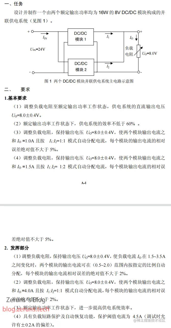 设计并制作一个由两个额定输出功率均为 16W 的 8V DC/DC 模块构成的并联供电系统