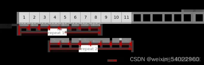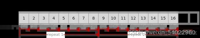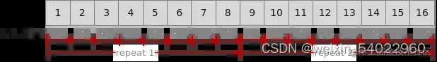 如下图所示,待处理数据大小为16个block(512Bytes),每次迭代处理8个block(256Bytes),需要两次迭代完成计算,Repeat times应设置为2。