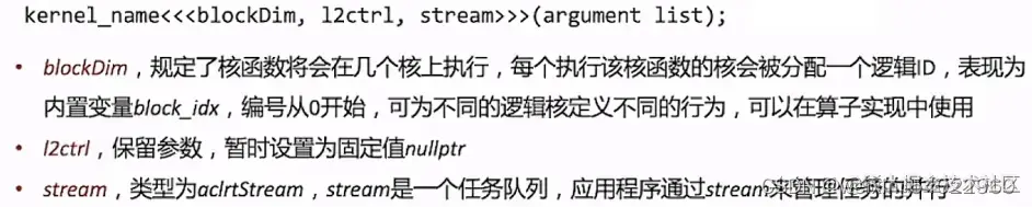 2、核函数的调用是异步的,核函数的调用结束后,控制权立刻返回给主机端,可以调用aclrtSynchronizeStream函数来强制主机端程序等待所有核函数执行完毕。