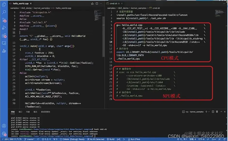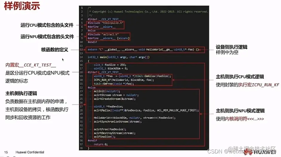4、代码里使用内置宏 __CCE_KT_TEST__标识被宏包括的代码在CPU或NPU模式下编译。