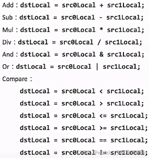 运算符重载,支持+, -, *, /, |, &, <, >, <=, >=, ==, !=,实现1级指令的简化表达。允许用户使用形如:dst = src0 * src1,针对整个Tensor进行计算,一下指令API拥有3级接口: