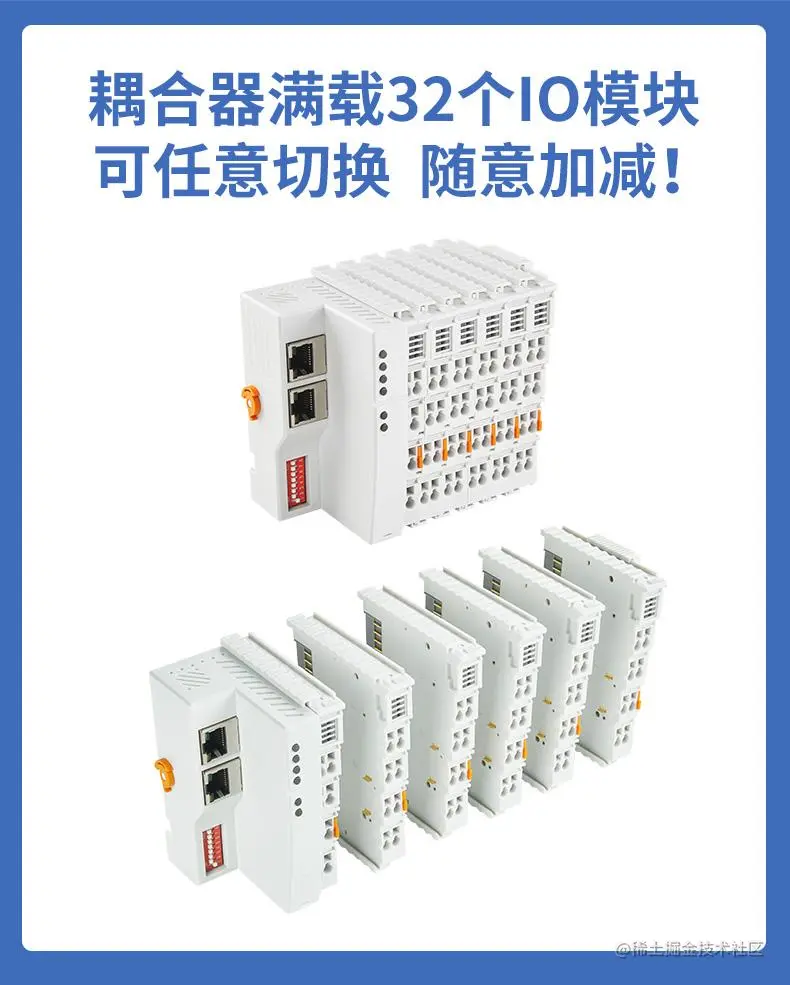 BL200系列分布式IO系统,适用于大点数集中控制的应用场景,采用耦合器和I/O模块结构,用户可以根据需求自行选择I/O模块。耦合器可挂载多达32个IO模块,采用10MHz高速背板总线通讯,模块提供丰富的I/O接口类型如:AI、AO、DI、DO、PT100、RS485,提供2个RJ45以太网接口,可以实现级联。目前分布式IO系统支持MQTT、OPC UA、Modbus TCP、ProfiNet、EtherCAT、 EtherNet/IP等总线通讯协议。