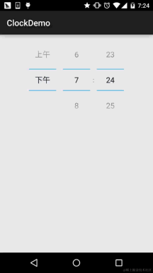 样子还是蛮标致的哈,我们发现官方给我们提供的属性只有一个: android:timePickerMode:组件外观,同样可选值为:spinner和clock(默认) 前者是旧版本的TimePicker。