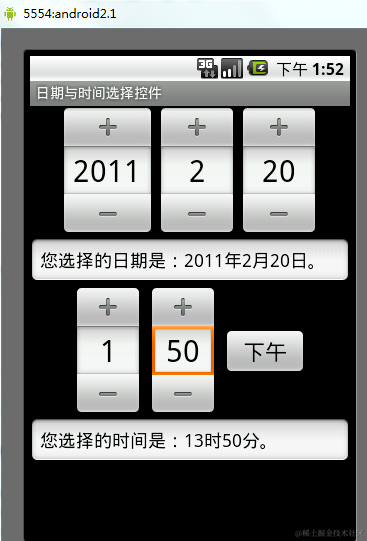 运行效果图: 可惜的是,同样需要旧版本的TimePicker才会触发这个事件!