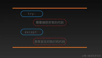 try 和 except 语句块可以用来捕获和处理异常,try 后面跟的是需要捕获异常的代码,except 后面跟的是捕获到异常后需要做的处理。每一个 try 语句块后面必须跟上一个 except 语句块,即使 except 语句块什么也不做。