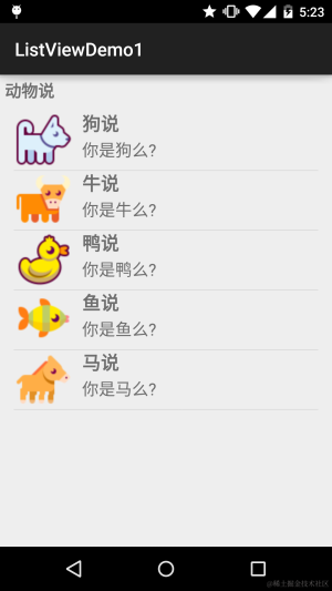 一个很简单的ListView,自己写下Item,然后加载点数据这样~ 下面贴下关键代码: