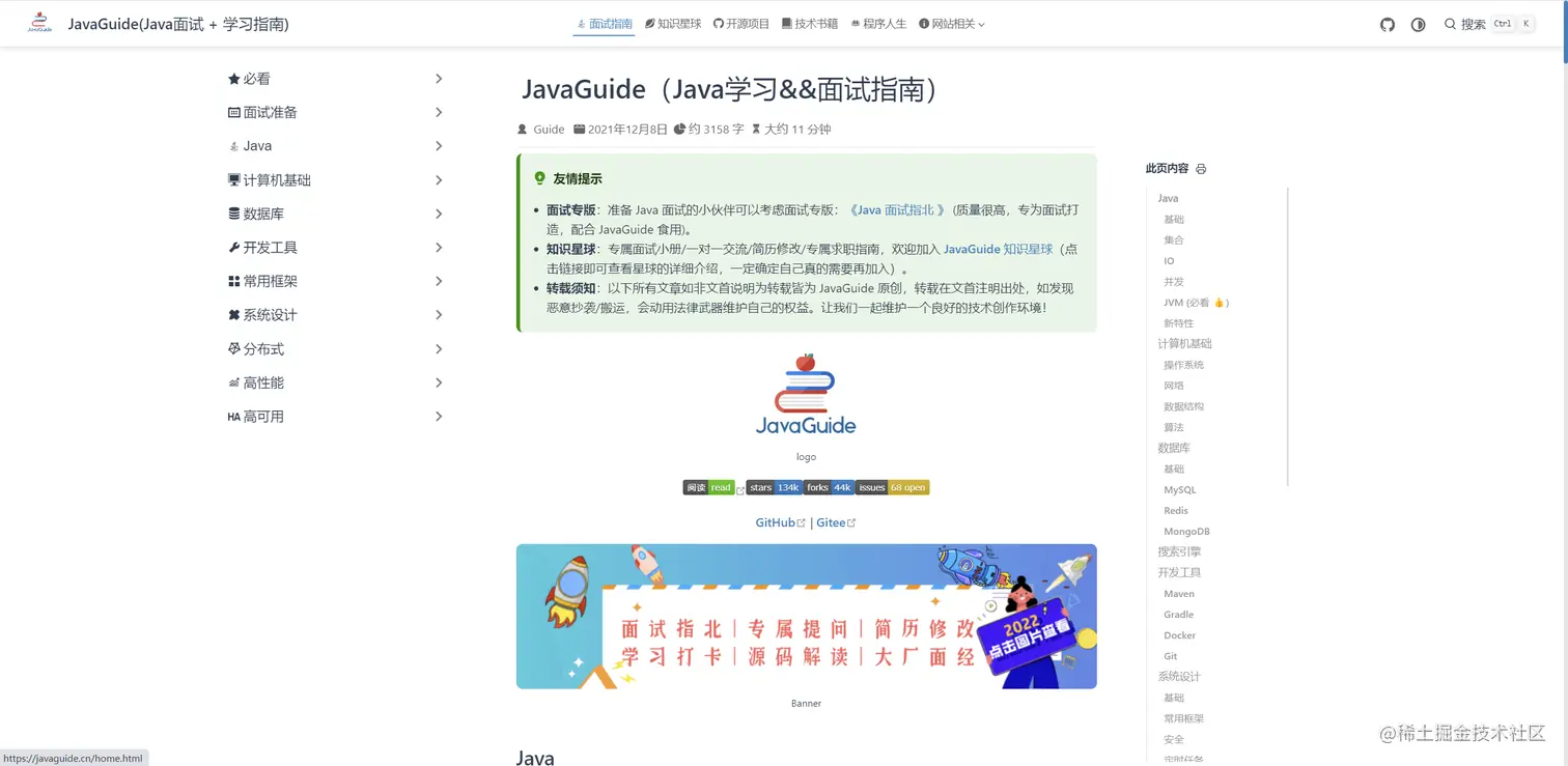 项目简介:「Java学习 + 面试指南」一份涵盖大部分 Java 程序员所需要掌握的核心知识。准备 Java 面试,首选 JavaGuide!