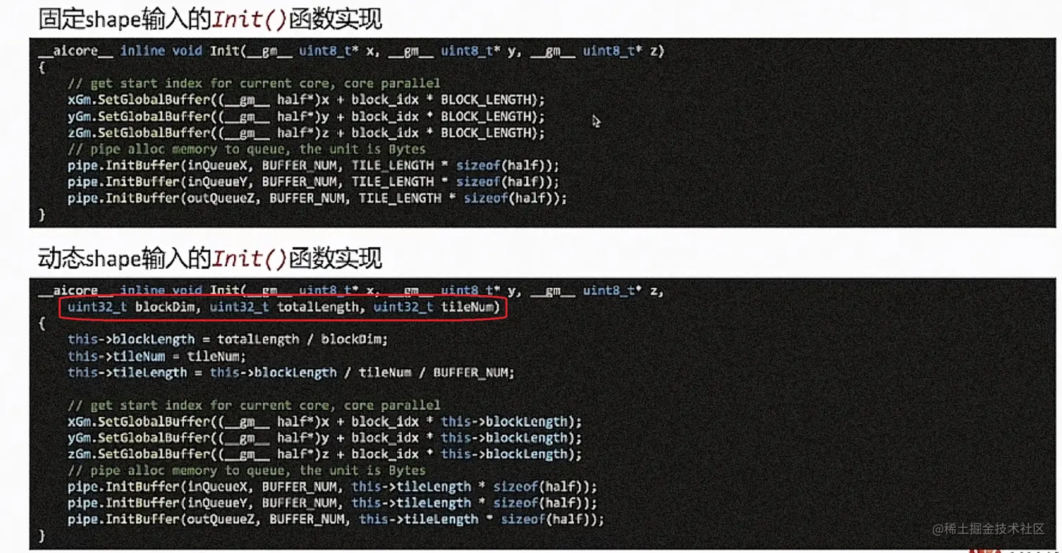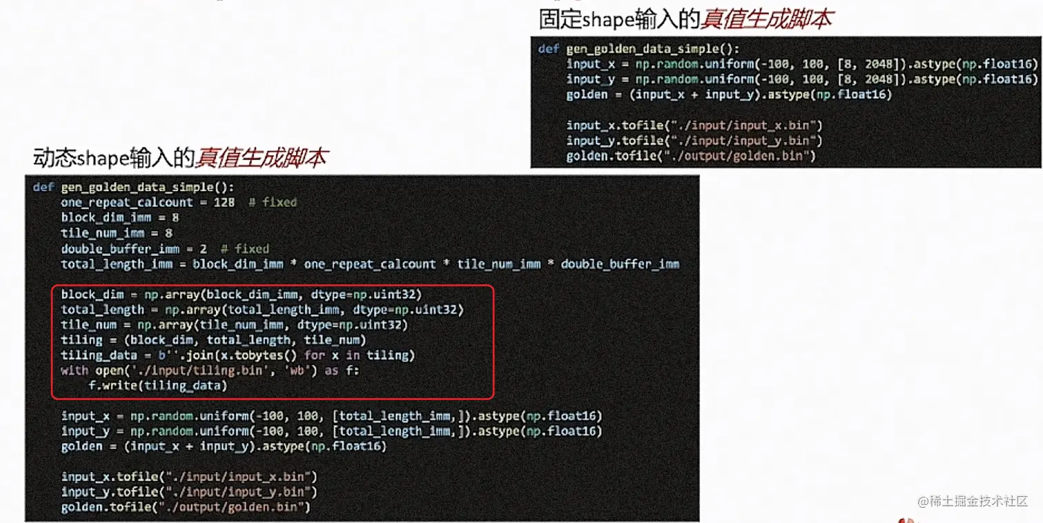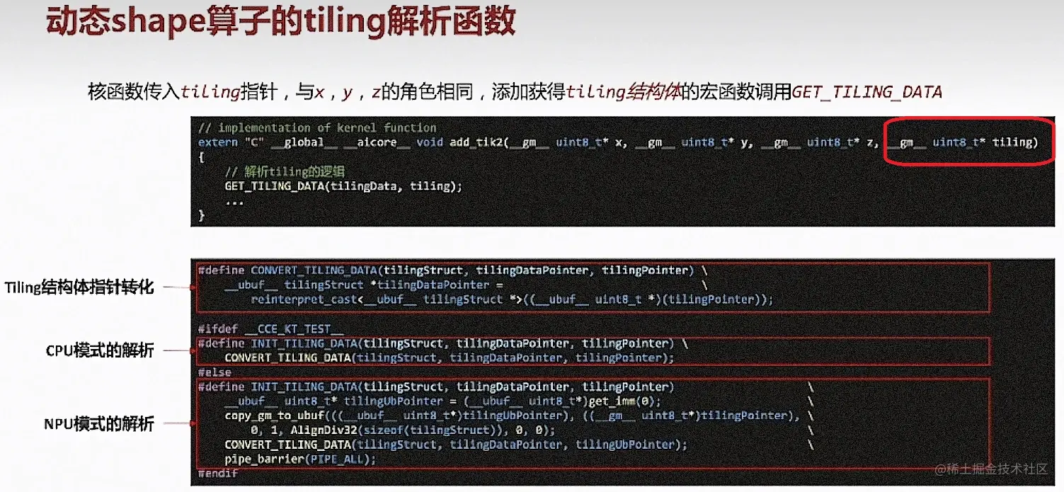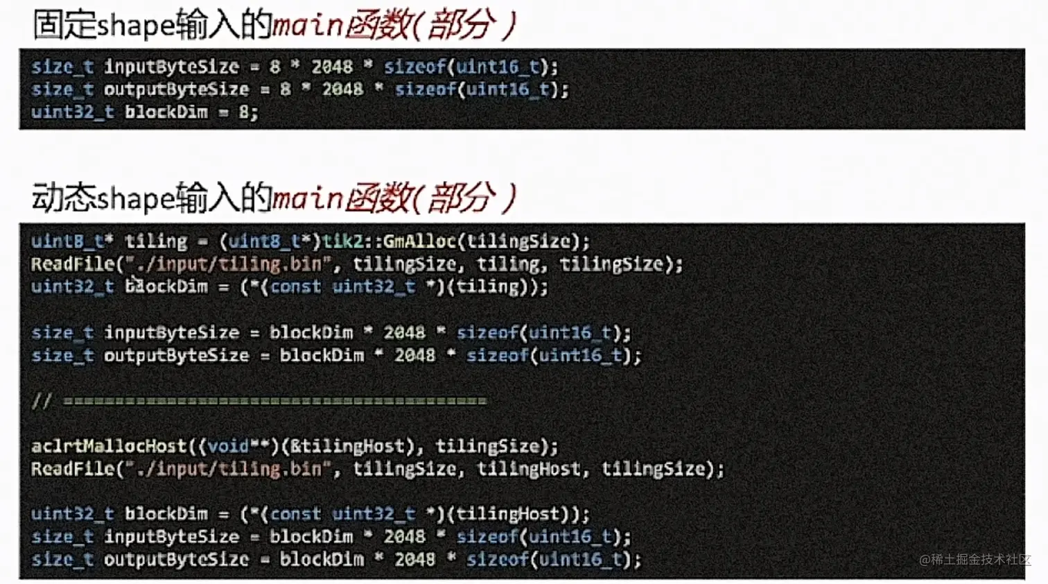 差异在于动态shape,需要根据输入的tiling计算出实际的数据大小。