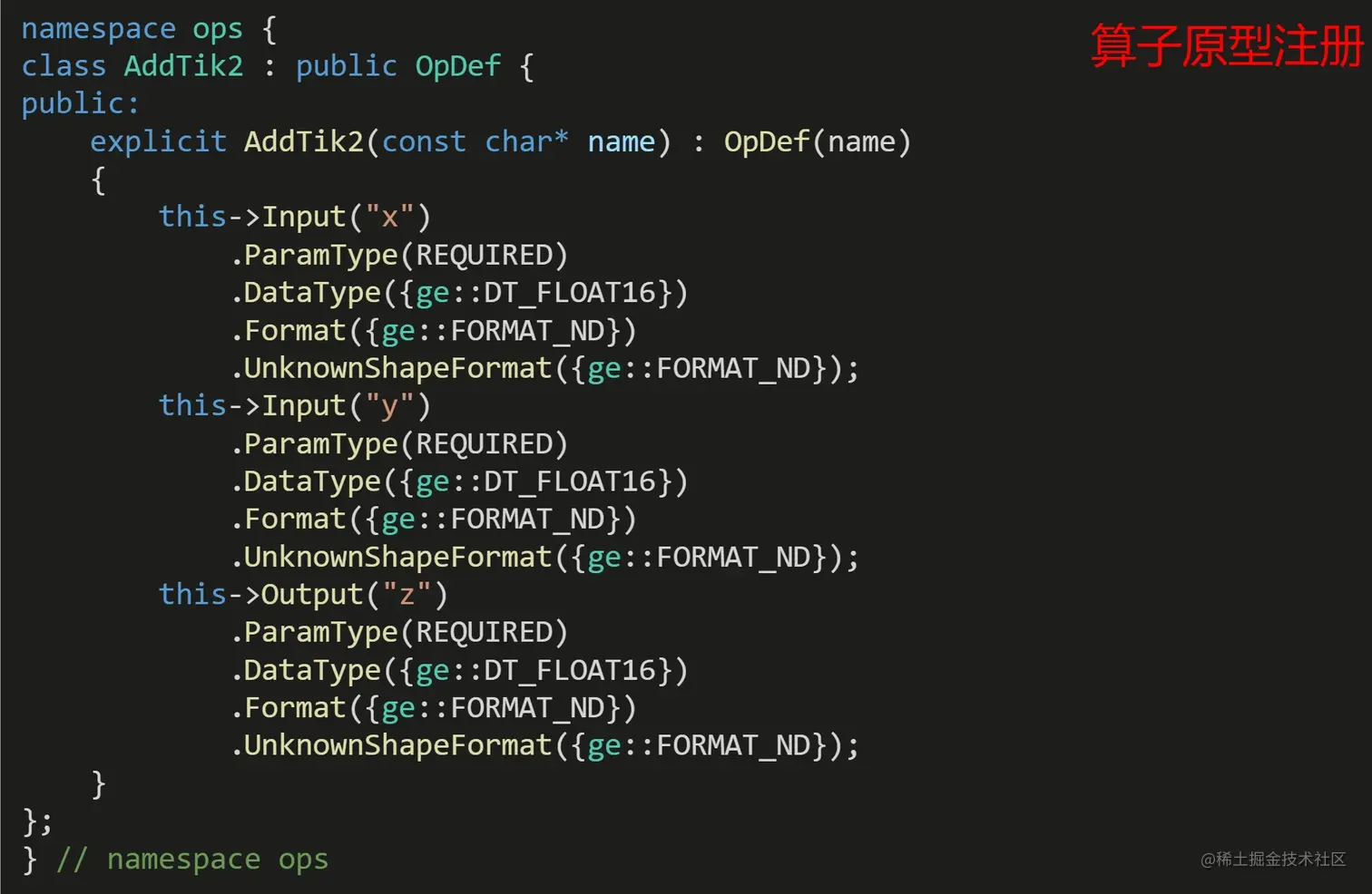 算子原型描述了算子的输入输出,属性等信息,算子原型注册用于将算子注册到算子原型库中。
