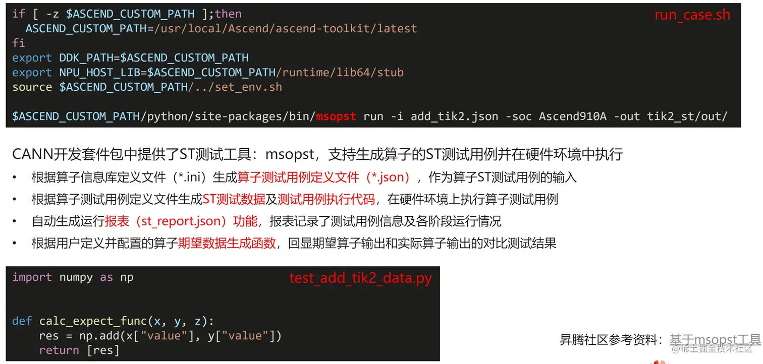 ST的本质是创建ACL应用程序测试NPU模式下的TIK C++算子用例,将开发好的算子,编译好后,打包成自定义算子包,部署到系统中。