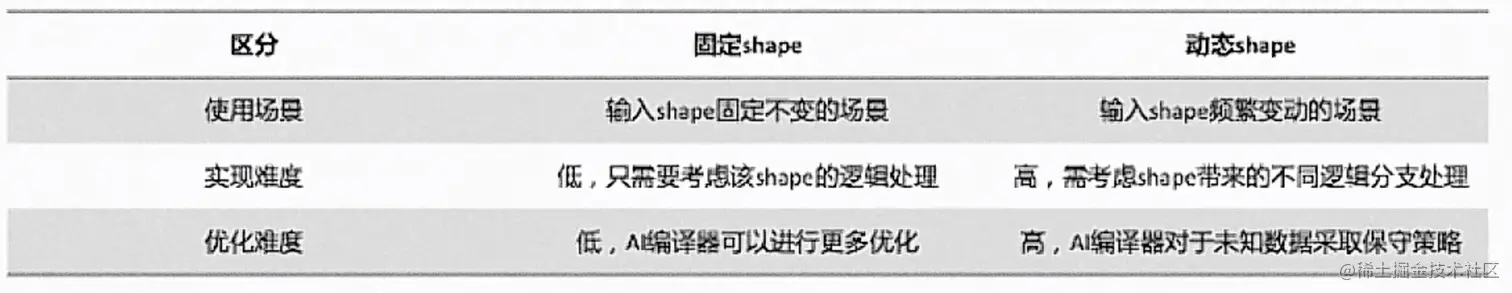 动态shape和固定shape是一对概念。固定shape是指,在编译时指定shape大小,运行时不需要指定shape大小。在开发固定shape算子过程中,一个算子源代码可以支持多个固定shape,但需要在编译时明确了shape的实际值。而动态shape则是在编译时不指定shape大小,在运行时传入实际的shape大小,算子编译后的二进制文件支持任意shape,或者是一个或多个shape范围。
