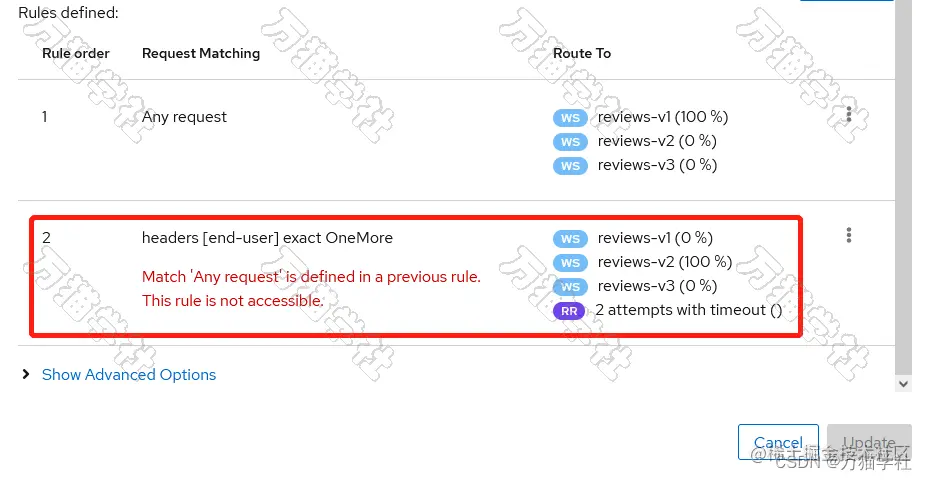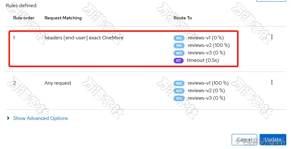 目标:来自名为 OneMore 的用户的所有流量都路由到v2版本。