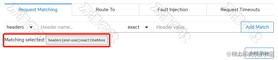 点击“Add Match”后,“Matching selected”变为“headers [end-user] exact OneMore”,如下图:
