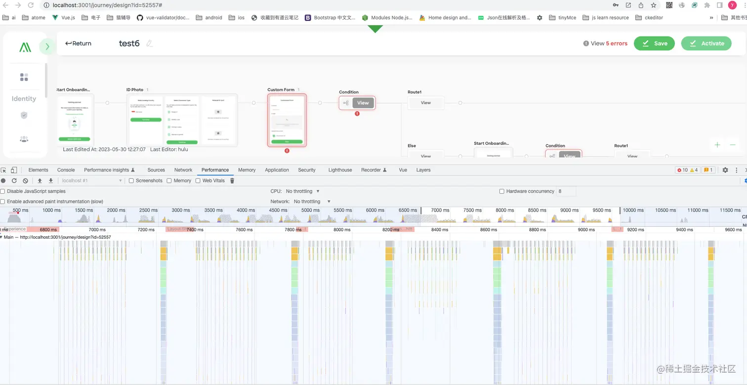 可以看到各种缩放操作下性能面板程序绿色。没有出现drawio那样的大范围掉帧。