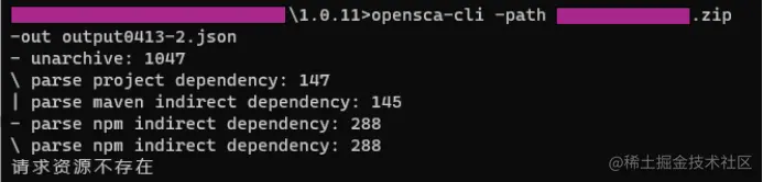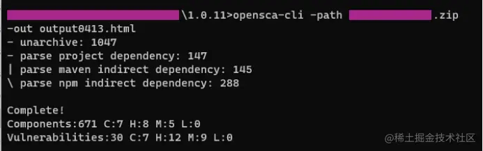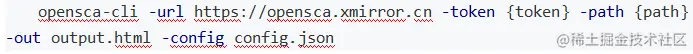 设置完毕后,确保配置文件和 opensca-cli 在同一目录下,执行 opensca-cli 检测命令加上 - config congif.json 即可,示例: