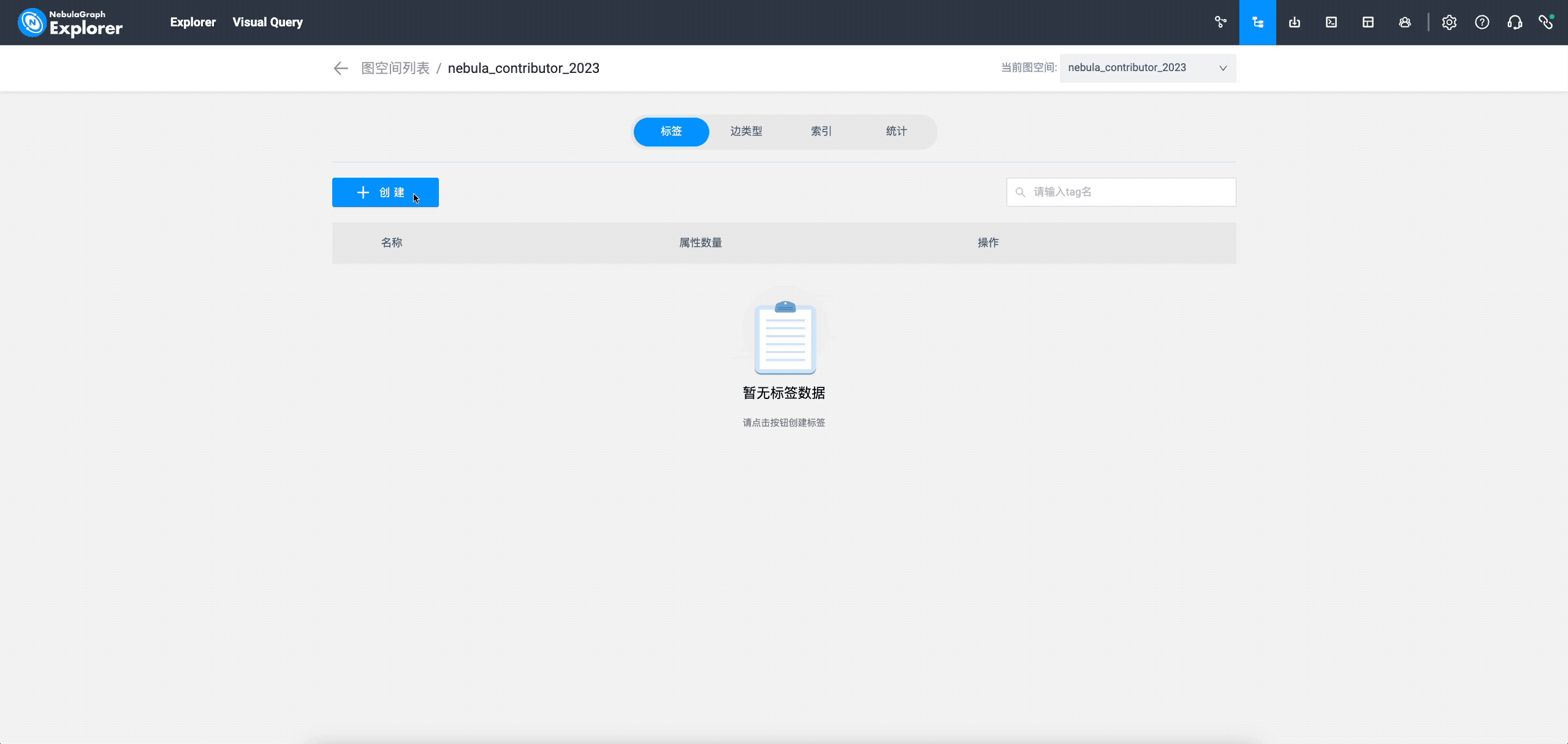登陆到 NebulaGraph Explorer 之后,先创建一个图空间(类似 MySQL 中的 Table):