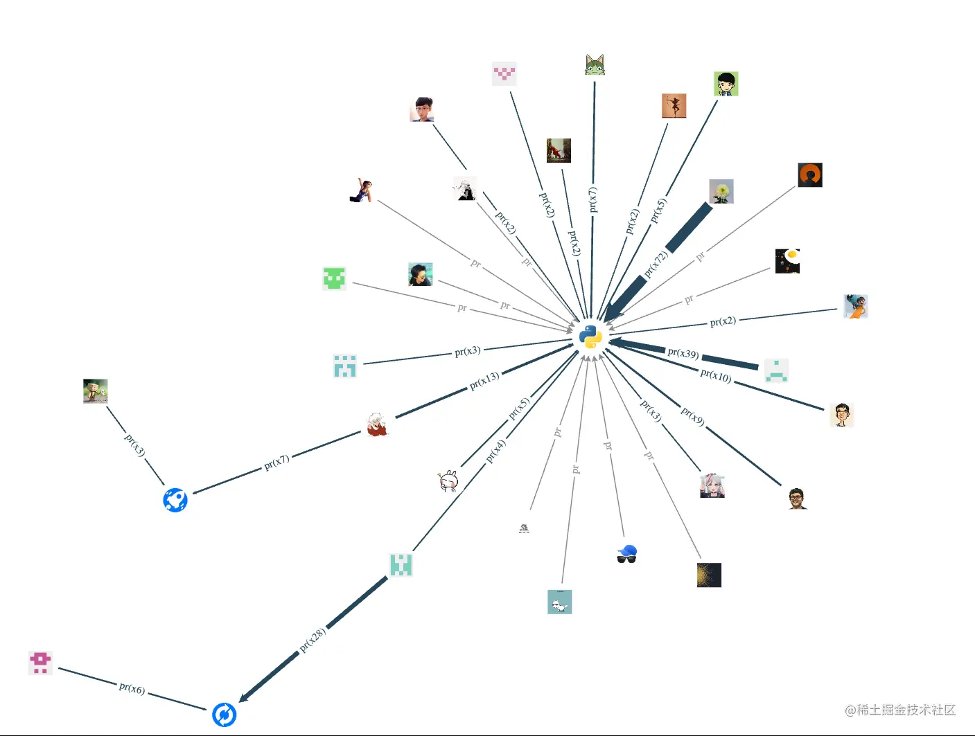看得见的 contributor 和 pr 关系