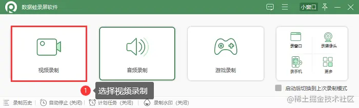 步骤2: 在软件主界面,你可以选择录屏的模式,这里以视频录制为例。