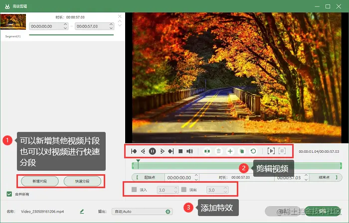 步骤4: 录制结束后,可以点击【高级录制】对视频进行快速分段、剪辑、添加特效等操作,然后点击【完成】按钮结束录制。