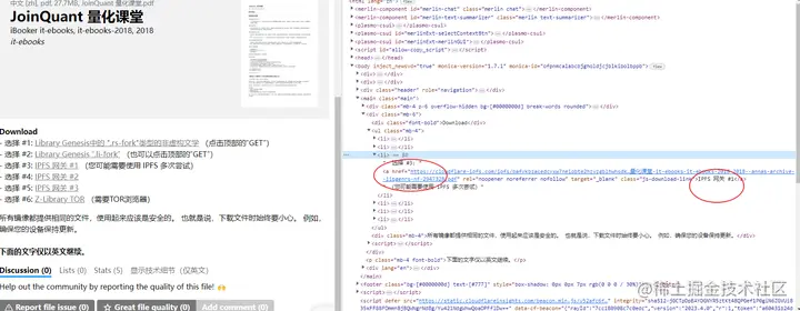 如果找不到内容为”>Z-Library匿名镜像 #1”的a元素,就寻找内容为”IPFS 网关 #1”的a元素,然后提取a元素的href值,作为文件下载链接,下载这个文件;