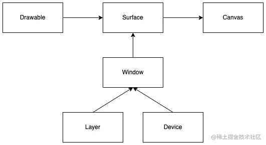 3. Surface(表面): 创建canvas画布提供可绘制区域,对外提供flush绘制接口;当窗口尺寸发生变化时,surface会创建新的canvas