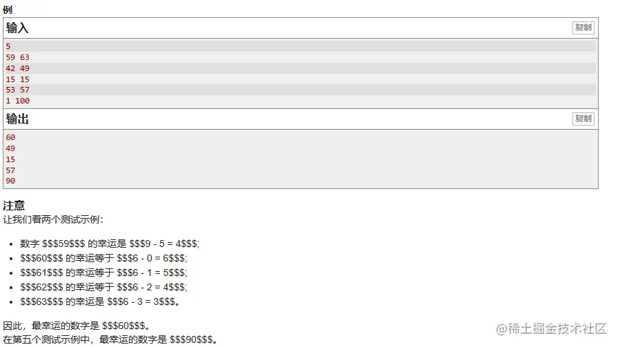 可以发现,每遍历100个数必然会出现一个存在9和0的组合的数,而两个个位数相减最大结果就是9,所以遍历时计算出幸运值9时候就无需继续遍历了。