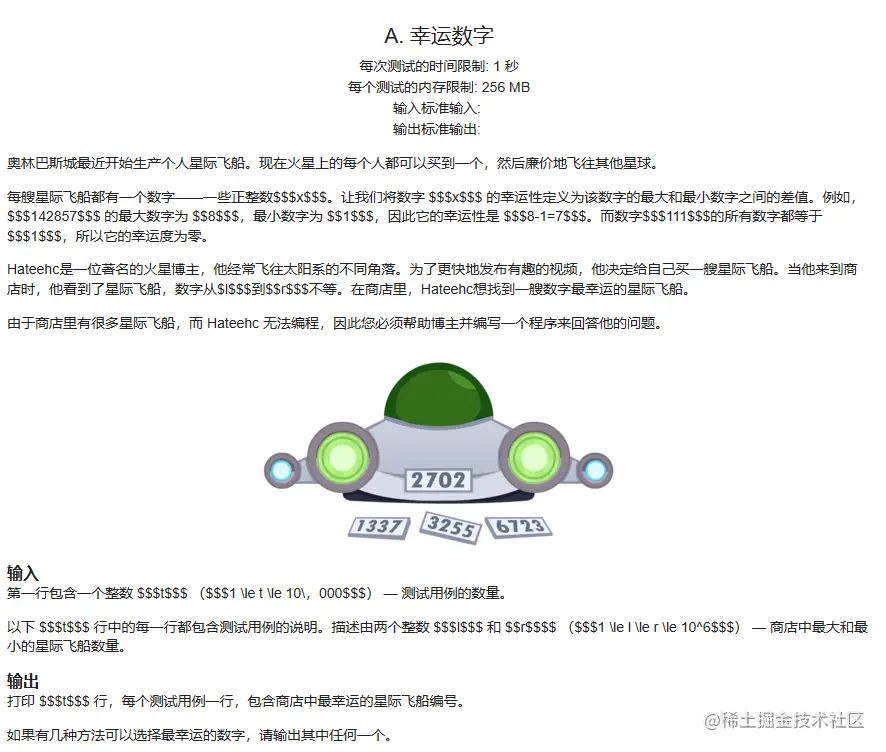 题意:一个数的幸运值计算规则是用里面最大的数字-最小的数字所得值 给出一个范围,求这个范围里幸运值最大的是哪个数