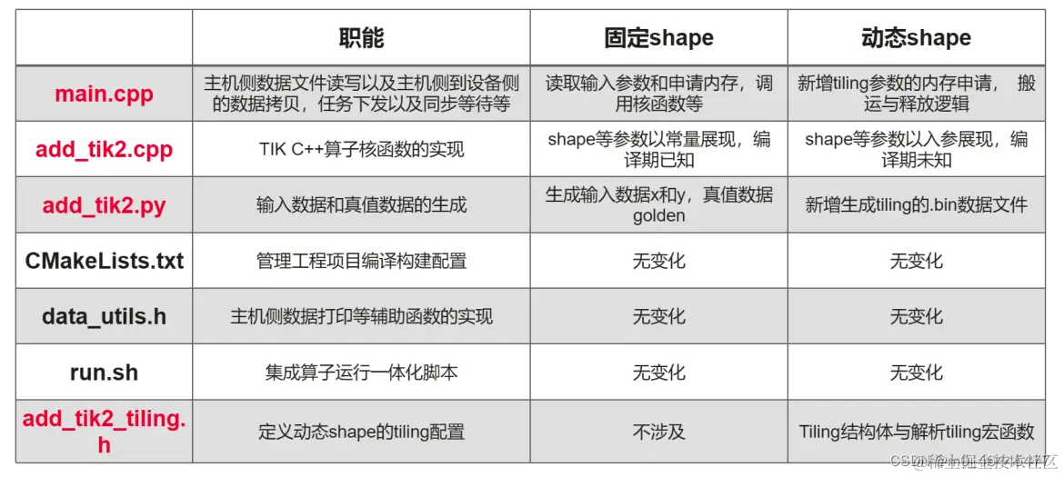 主要是核函数、KernelAdd类、Init()函数、add_tik2.py和main.cpp由明显的区别,主要区别代码参考相关文件。